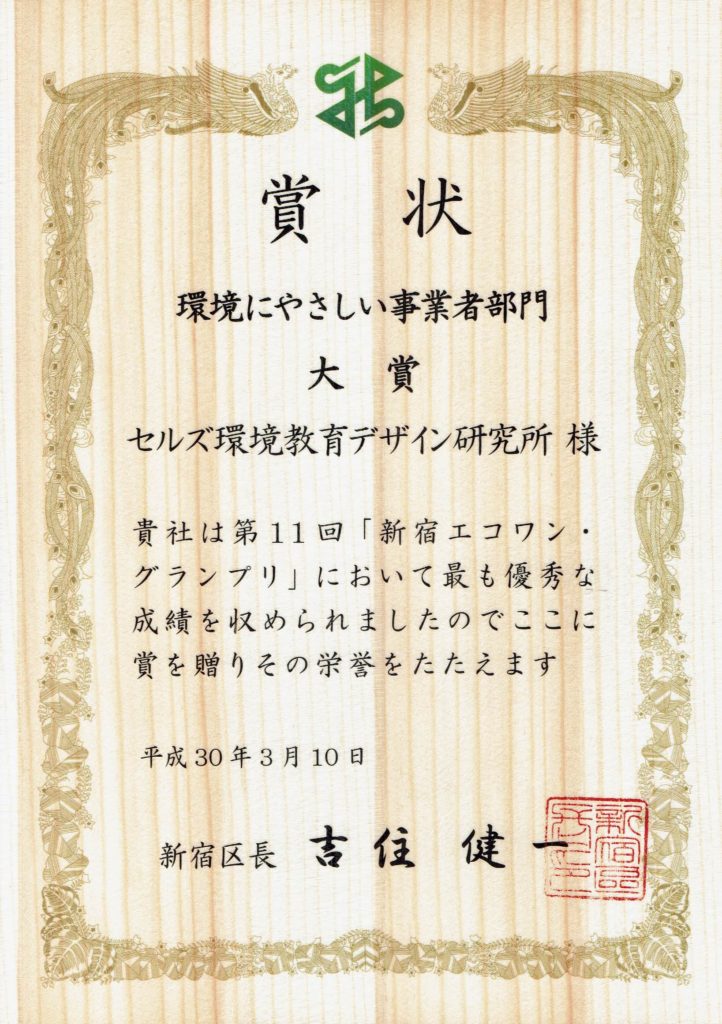 ・新宿エコワン・グランプリにおいて「環境にやさしい事業者」大賞を受賞
